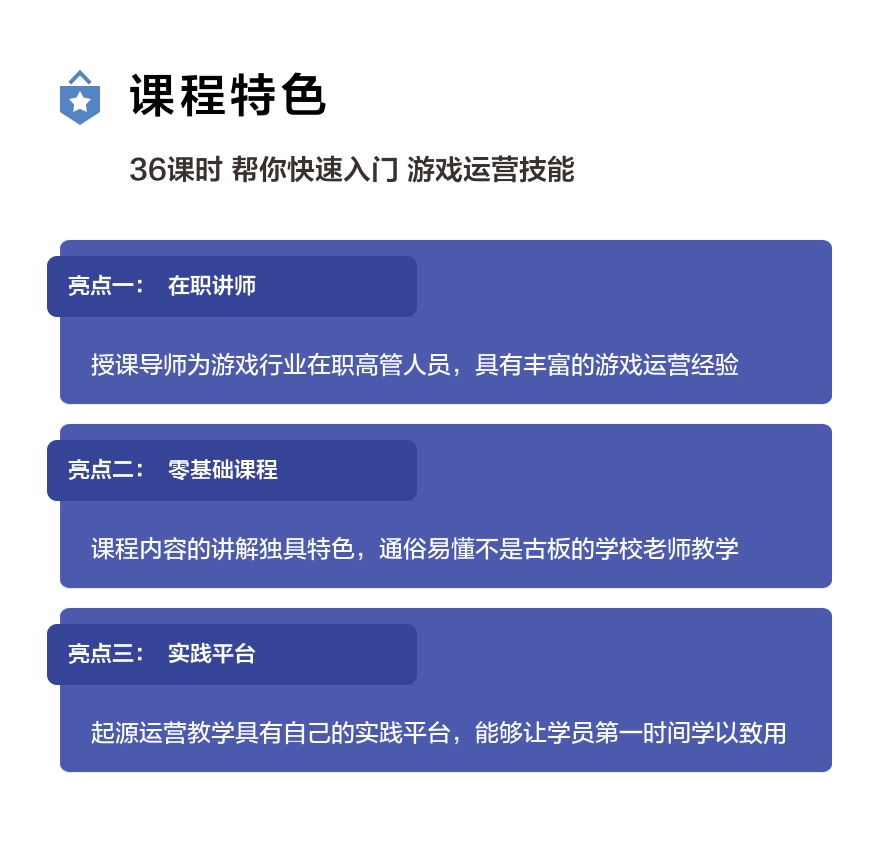 让你熟知各类游戏产品的运作及游戏运营的类型区分,有效掌握游戏运营的操作方法,不在做一个职场小白